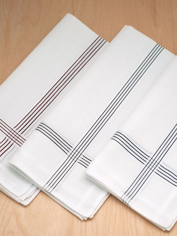 Set of 3 Fine Woven Mens Handkerchiefs with Thick Double StripesSet of 3 Fine Woven Mens Handkerchiefs with Thick Double Stripes