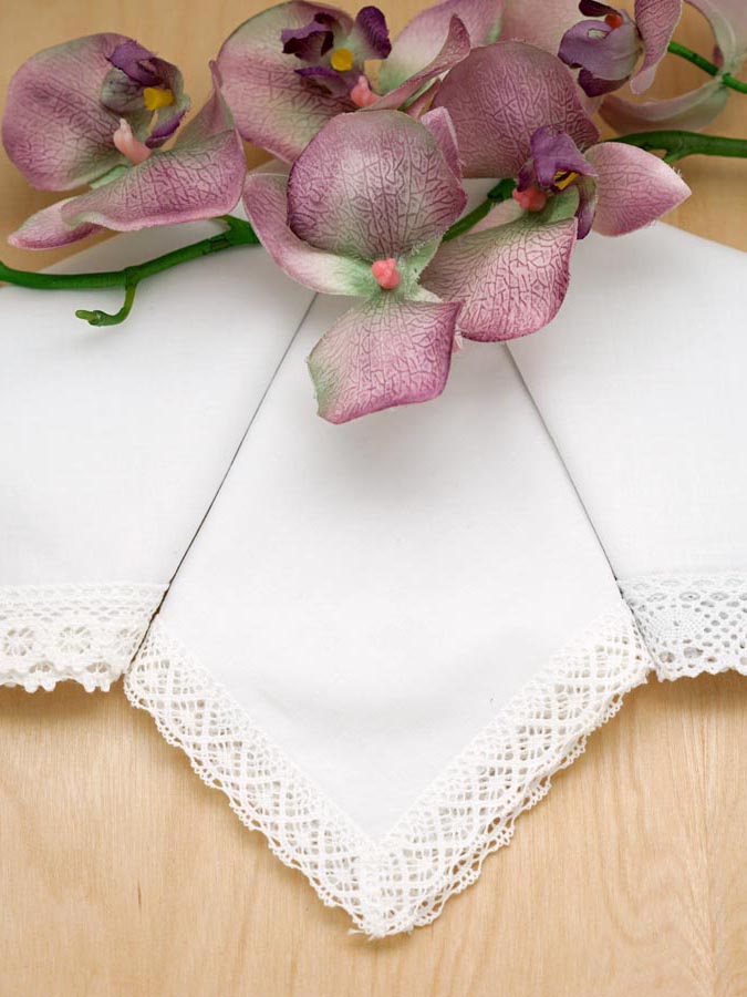 Thank you so much for the handkerchiefs. I have been needing these for a while but never was able to take time to order any until now. I have so much trouble with the lint from paper products and end up coughing forever, so I am having wonderful results from these. I know these are for a wedding, bu..