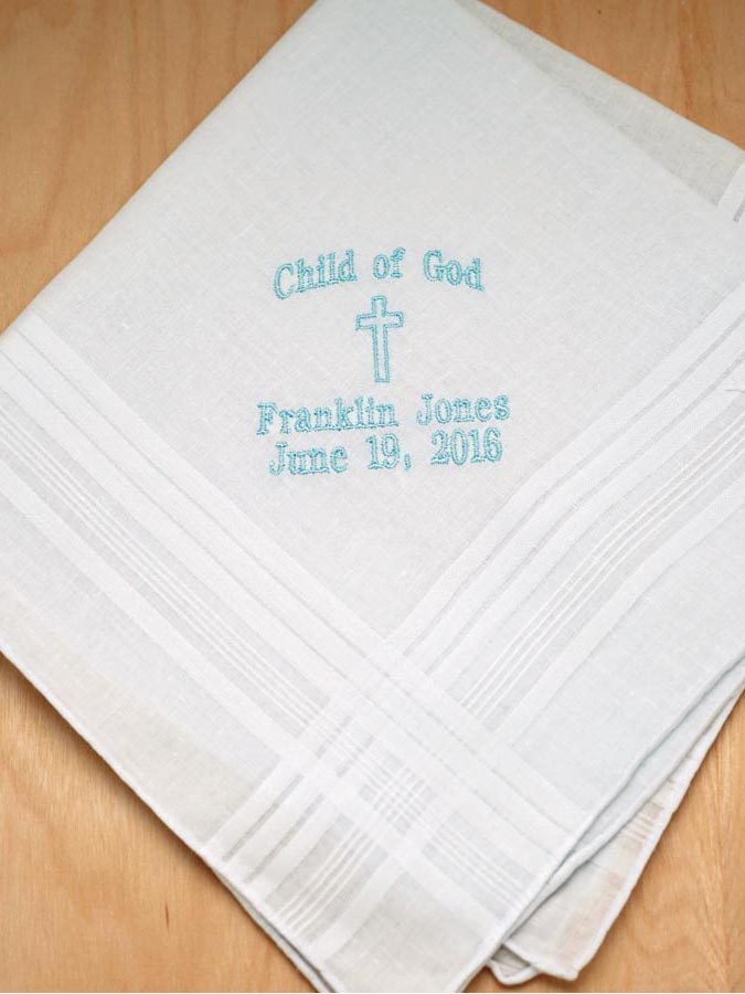 "This hankie was beautifully done, and ready/shipped before the anticipated date. It made a nice gift to my nephew who was being baptized."