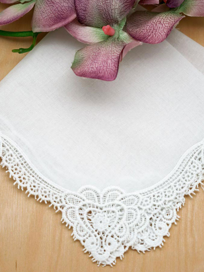 Home » Wedding Handkerchiefs » Lace Edges » HLWC-012