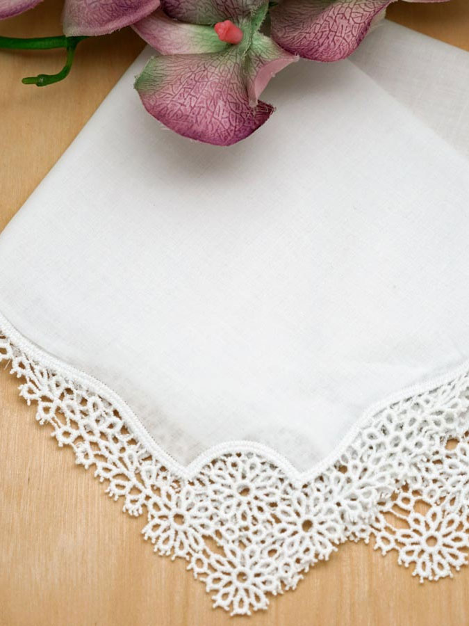 Home » Wedding Handkerchiefs » Lace Edges » HLWC-007