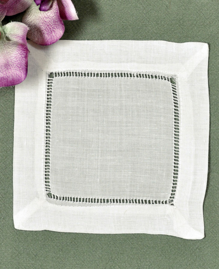 Ecru Hemstitched Linen Cocktail Napkins 6in