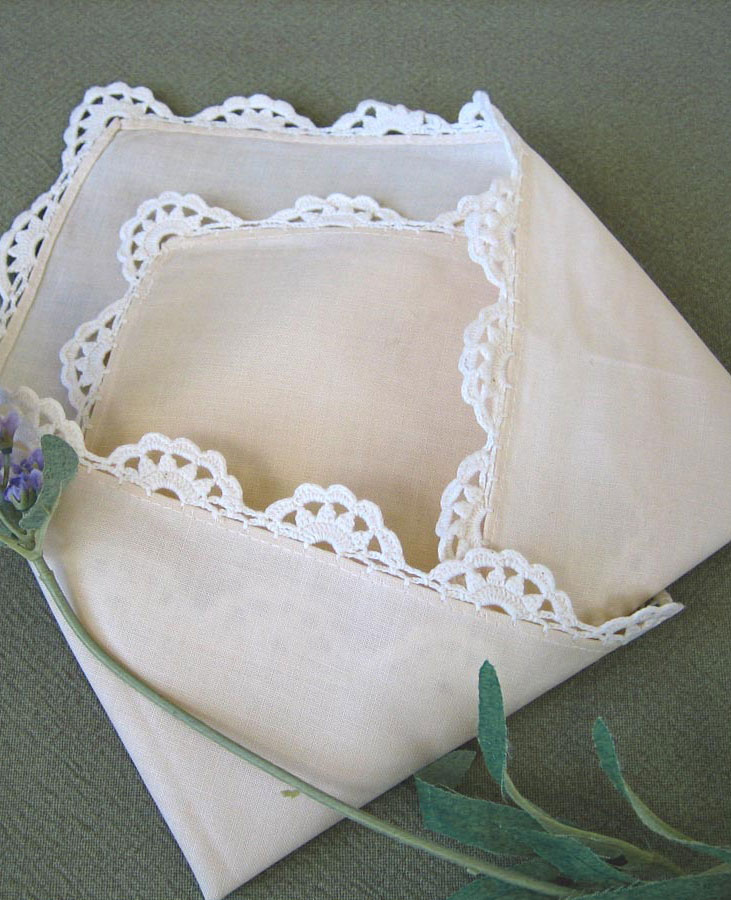 1 Dozen Ecru Scalloped Crochet Lace Dinner Napkins1 Dozen Ecru Scalloped Crochet Lace Dinner Napkins