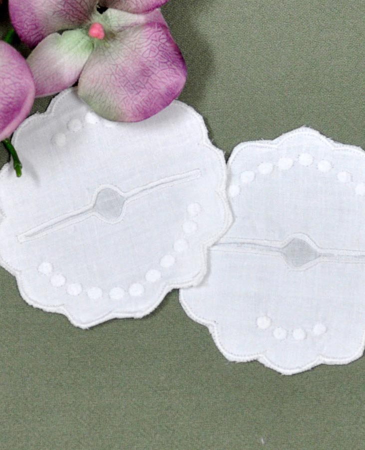 Set of 3 White Embroidered Flowers with Scallop Edges