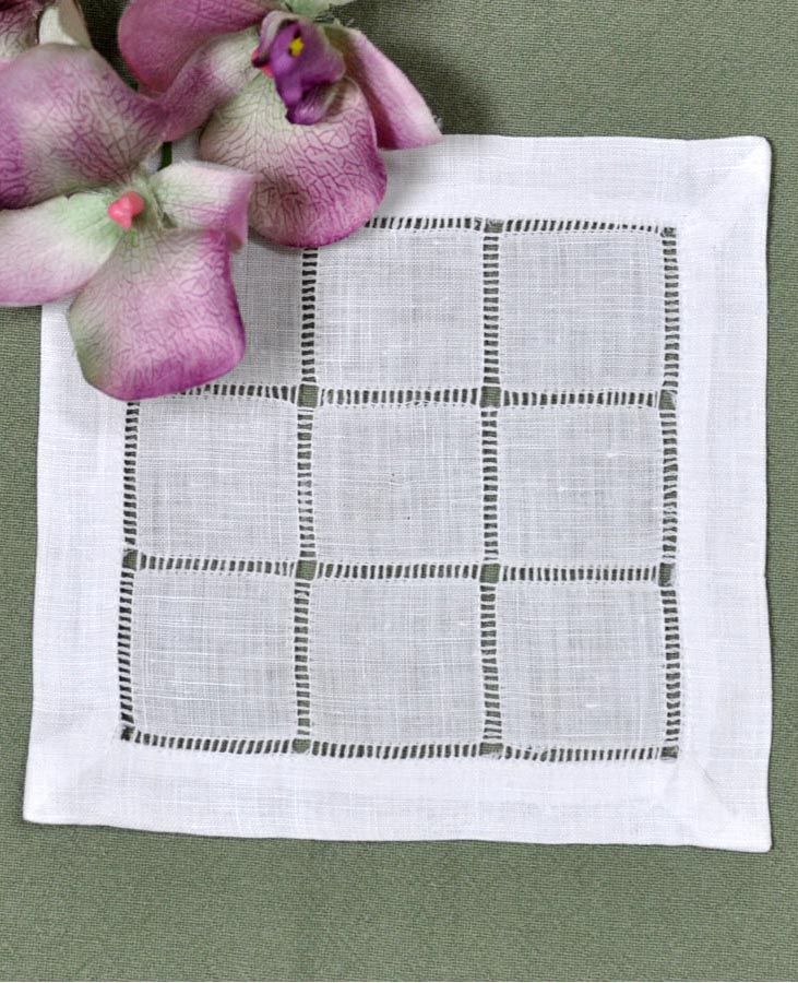 1 Dozen White Grid Hemstitched Linen Cocktail Napkins