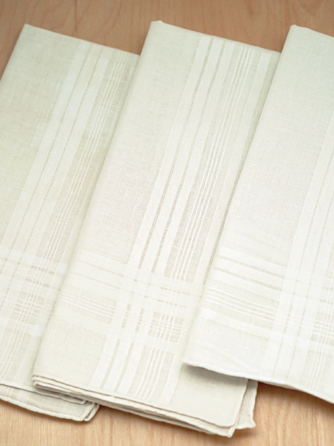 Set of 3 Ivory Woven Mens Handkerchiefs with Thin Satin StripesSet of 3 Ivory Woven Mens Handkerchiefs with Thin Satin Stripes