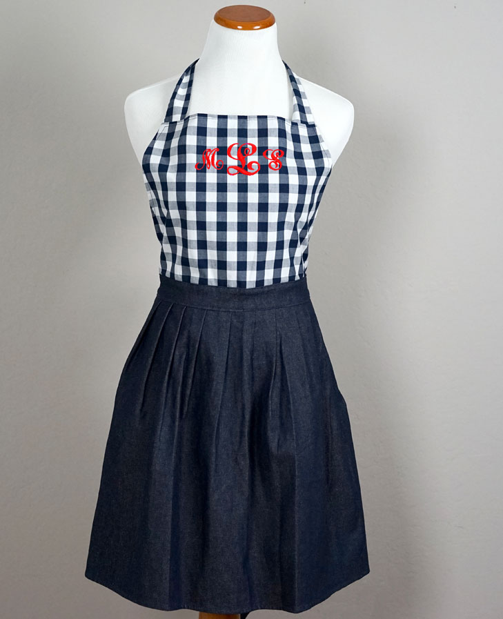 Ladies Navy Gingham Denim Hostess Apron $34.99 5 of 5 Stars!