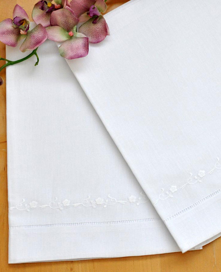 White Hemstitched Cotton Pillowcases With Daisy Chain Design