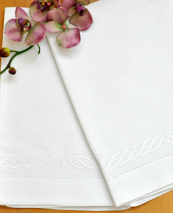 White Hemstitched Cotton Pillowcases With A Wave Design