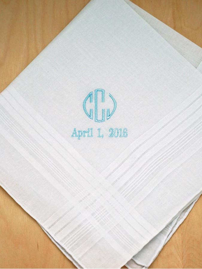 Mens Monogrammed Wedding Hankie w/ 3 Initials Date - Font O