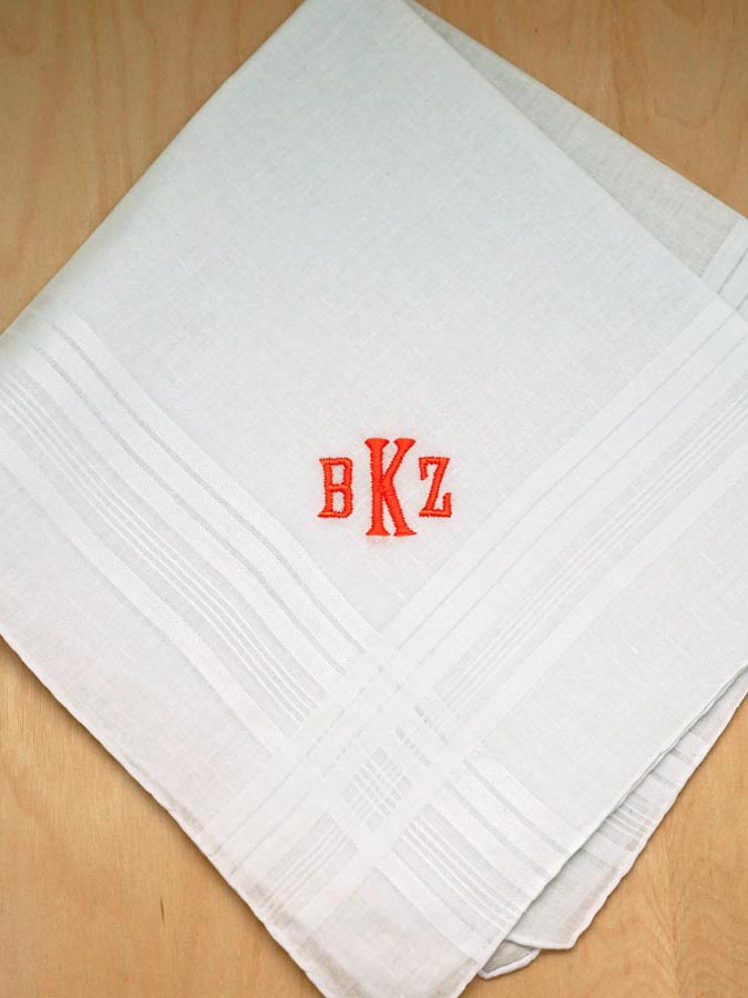 Mens Monogrammed Wedding Hankie w/ 3 Initials - Font O