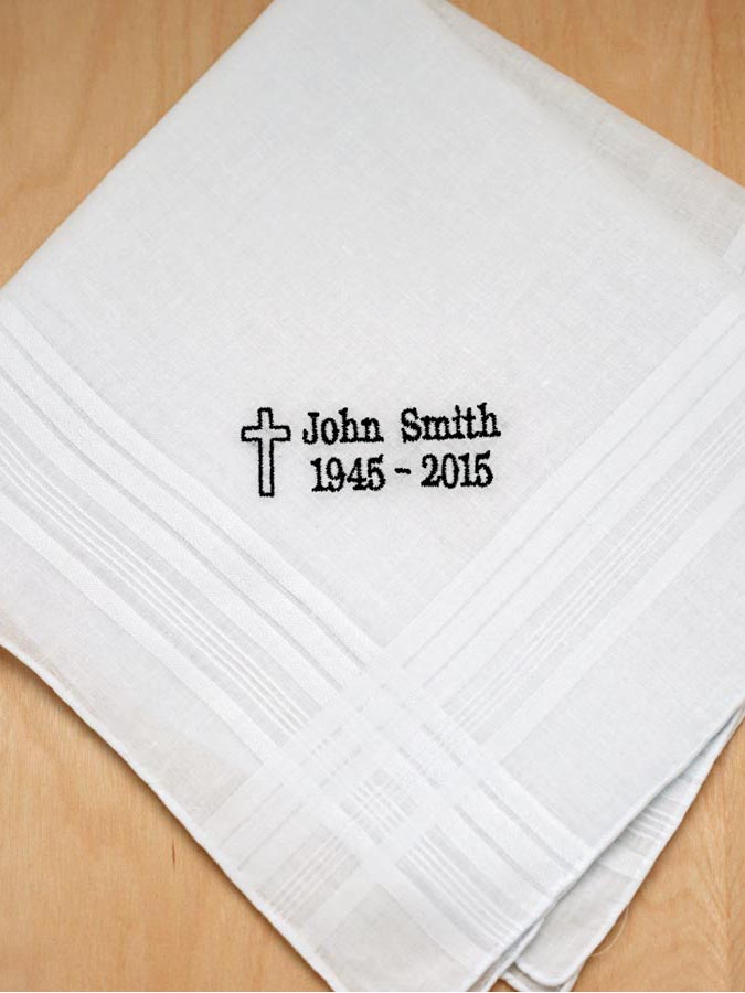 Mens Personalized In Memory Of Hankie w/ Cross Font H