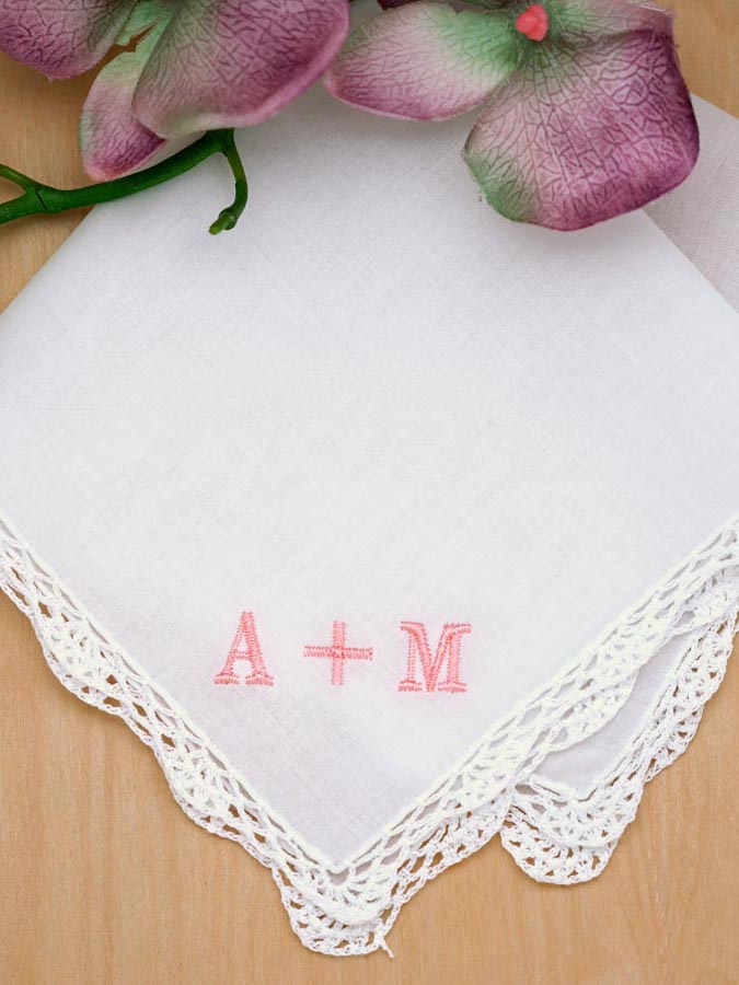 My young friend was very pleased with the Handkerchief gift for their Wedding in Nov. Thank you for sending it so promptly. I'm sure it will be kept and treasured. Wishing you continued success in the very personal work that you do. VCS..