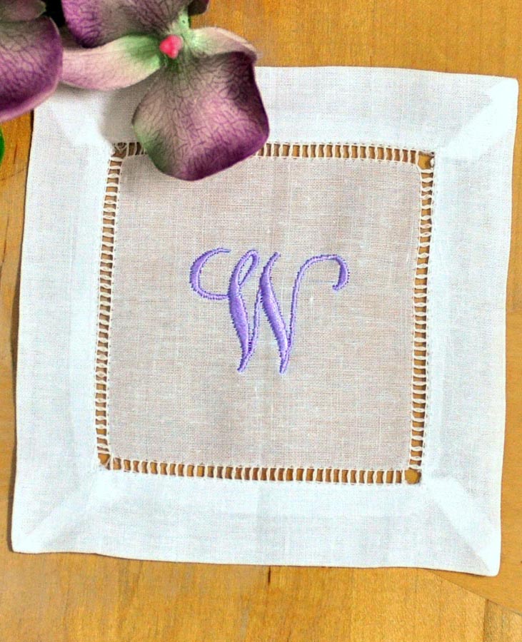 Set of 4 Monogrammed Linen Cocktail Napkins 1 Initial Font ASet of 4 Monogrammed Linen Cocktail Napkins 1 Initial Font A