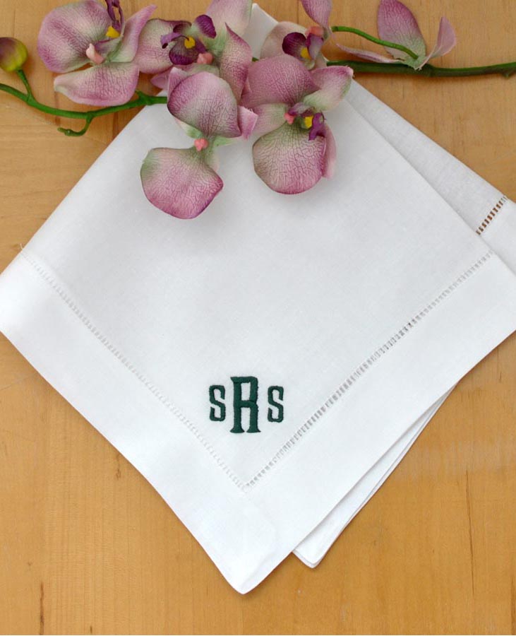 Set of 4 Monogrammed Linen Dinner Napkins w/ 3 Initials- Font E $53.99
