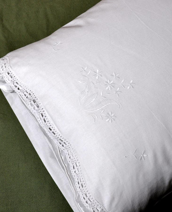 Pair of Cotton Pillowcases with Daisy and Lace EdgesPair of Cotton Pillowcases with Daisy and Lace Edges