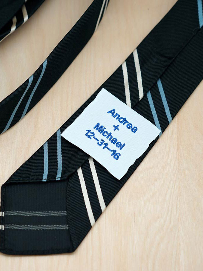 We make our best effort to ship the wedding tie label out in a timely manner. However, please allow up to 5 days for it to be embroidered and shipped. Please remember, personalized items cannot be returned, so please check the spelling of the names carefully.