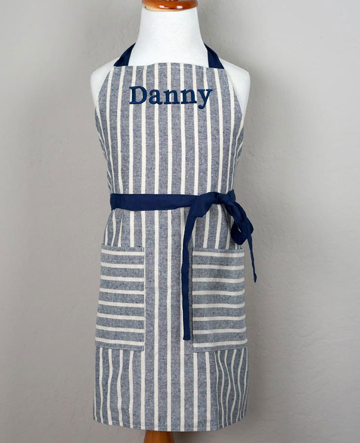 Striped Chambray Kids Apron with Navy Ties $16.99 5 of 5 Stars!