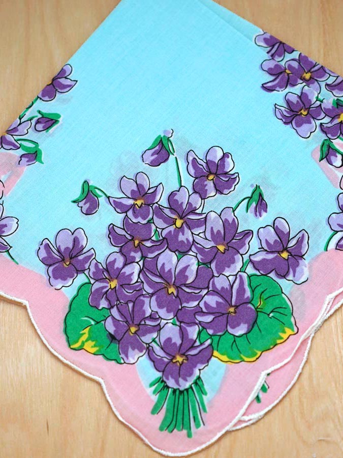Vintage Inspired Bouquet of Violets Print Hankie $9.99 5 of 5 Stars!