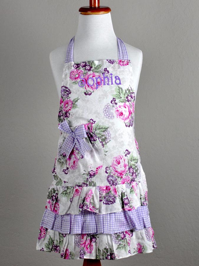 Vintage Inspired Purple and Pink Girls ApronVintage Inspired Purple and Pink Girls Apron