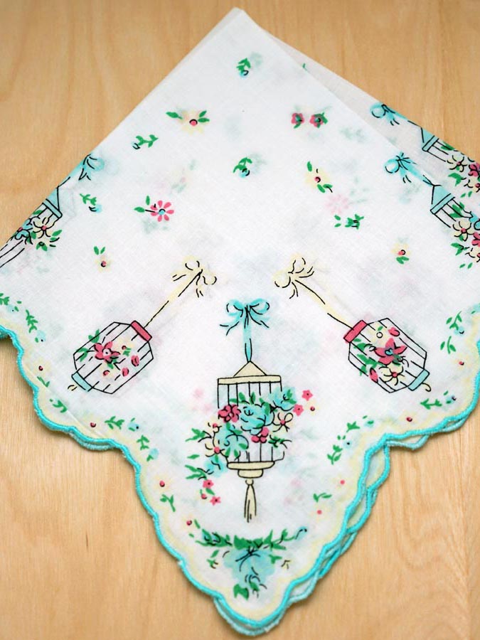 Vintage Inspired Teal Blue Birdcages Print Hankie $9.99 5 of 5 Stars!