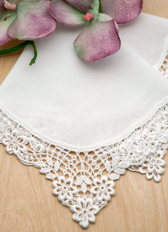 Home » Wedding Handkerchiefs » Lace Edges » HPW-007